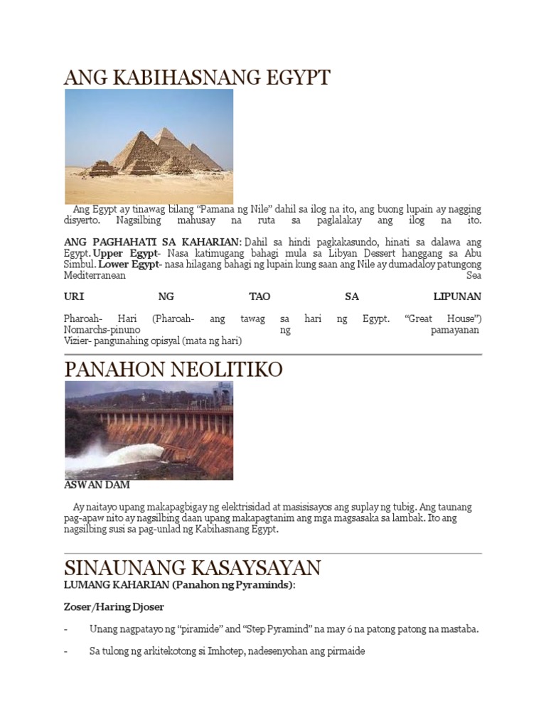 Hindi matukoy kung ilan ang namuno sa kahariang ito subalit ito ang mga tanyag na namunoi sa Lumang kaharian ng Sinaunang Kabihasnang Ehipto. Ang Nile na may 4 160 milya ang. KABIHASNANG EGYPTIAN Hindi sa Lambak ng Nile naganap ang mga gawain ng karamihan sa.