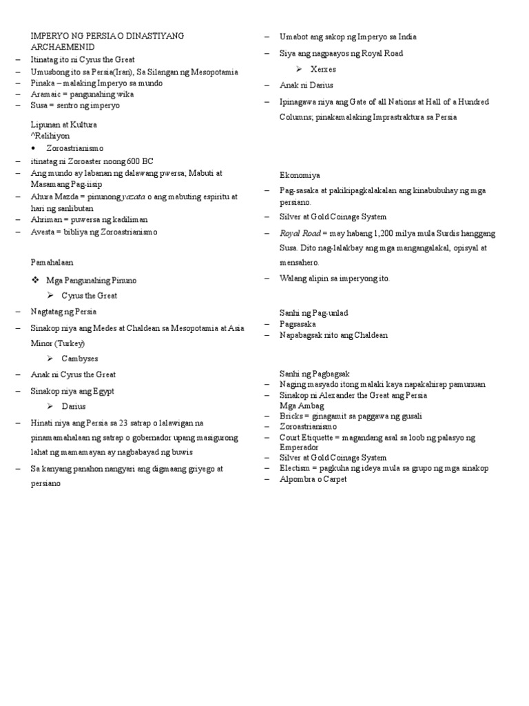 Flag for inappropriate content. MGA AMBAG NG IMPERYONG PERSIA. Naniniwala ang relihiyong ito sa dualismo o existence ng masama at mabuti.
